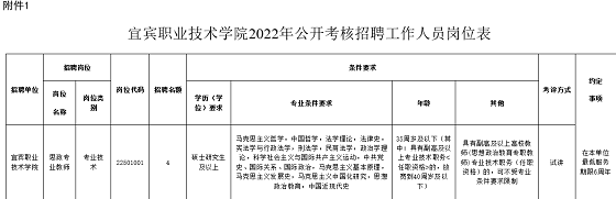 附件:1.宜賓職業技術學院2022年公開考核招聘工作人員崗位表