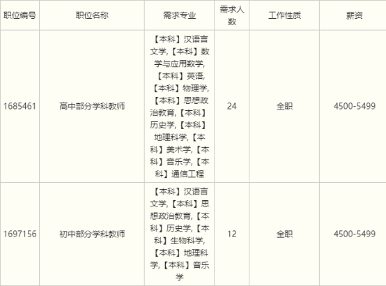 高中語文、高中數(shù)學(xué)、高中英語、高中物理、高中政治、高中歷史、高中地理、高中音樂、高中美術(shù)、高中信息技術(shù)、高中通用技術(shù)、高中體育學(xué)科教師若干名。