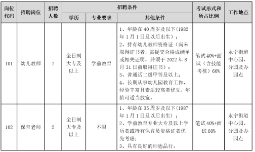 為進一步加強永寧街道幼兒教師隊伍建設和促進教育事業發展,經批準,街道下轄公辦幼兒園現計劃面向社會公開招聘工作人員9名。現將招聘有關事項介紹如下:
