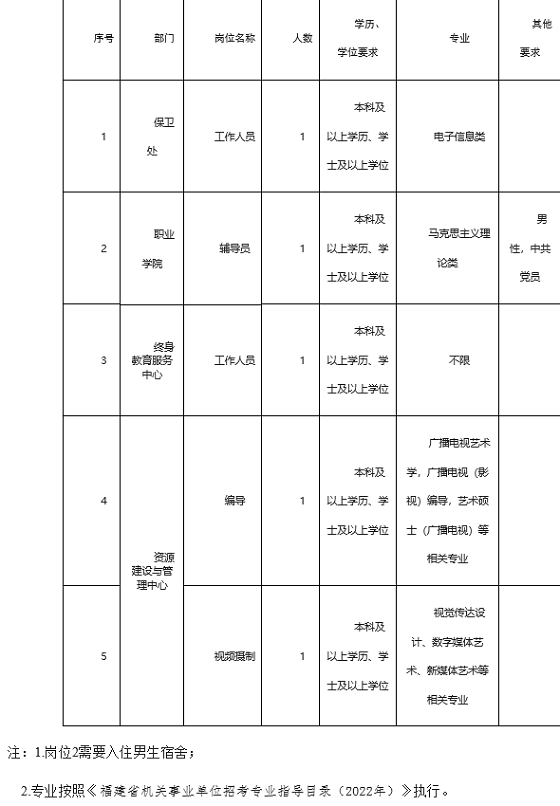 福建開放大學是福建省屬公辦高等院校。因工作需要,向社會公開招聘非在編工作人員5名。