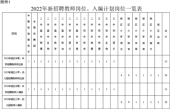 1.2022年新招聘教師崗位、入編計劃一覽表