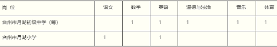 本次計劃公開選聘教師7名,其中臺州市月湖初級中學(籌)5名、臺州市月湖小學2名。具體學科見下表: