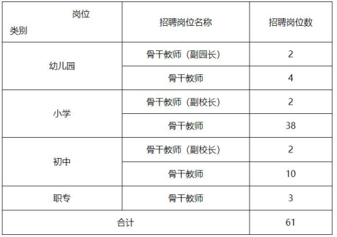 (3)教師資格證要求:幼兒園崗位須具備幼兒園教師資格證;小學崗位須具備小學或中學教師資格證;初中崗位須具備中學教師資格證;職專基礎學科教師崗位(語文、數學、英語、歷史)須具備高中及以上的教師資格證,專業學科教師崗位(電子、汽車、家政)不要求具備教師資格證。