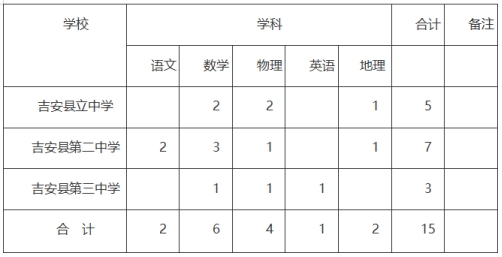 根據(jù)吉安縣《關(guān)于加快建設(shè)人才強(qiáng)縣的“二十條”措施》及《吉安縣引進(jìn)優(yōu)秀校長(zhǎng)、優(yōu)秀教師實(shí)施方案》精神和要求,經(jīng)縣政府研究同意,現(xiàn)就2022年吉安縣公辦普通高中招聘優(yōu)秀教師有關(guān)事項(xiàng)公告如下: