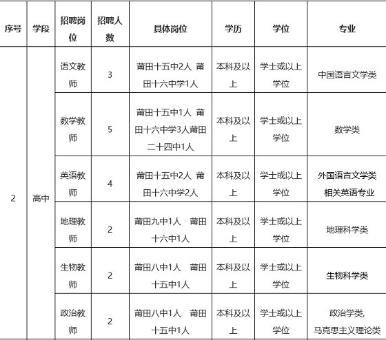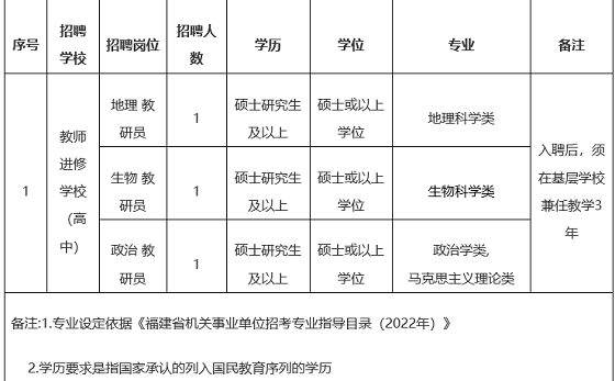 根據(jù)省教育廳、省人社廳《關(guān)于做好2022年全省中小學(xué)幼兒園教師公開招聘工作的通知》(閩教師[2022]8號(hào))及《2022年莆田市荔城區(qū)考核招聘中學(xué)新任教師方案》精神,我區(qū)在組織實(shí)施首輪專項(xiàng)招聘后,尚有部分崗位空缺,現(xiàn)就2022年莆田市荔城區(qū)補(bǔ)充專項(xiàng)招聘中學(xué)新任教師工作的有關(guān)事項(xiàng)公告如下: