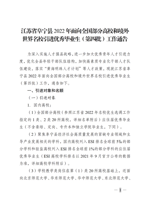 附件1:江蘇省阜寧縣2022年面向全國部分高校和境外世界名校引進優秀畢業生崗位表(第四批).xlsx