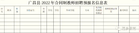附件:廣昌縣2022年合同制教師招聘預報名信息表