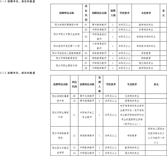 咨詢電話:各招聘單位;麗水市教育局0578-2626021、2626020