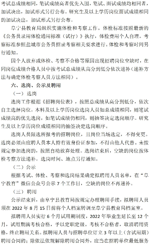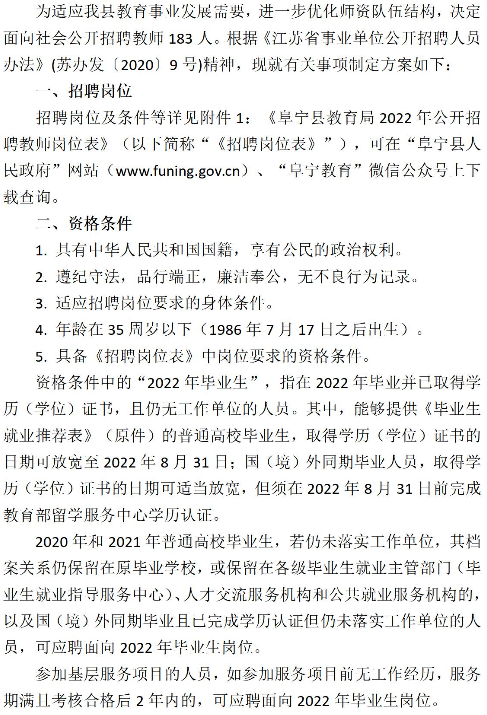 2022年江蘇鹽城阜寧縣教育局公開招聘教師方案