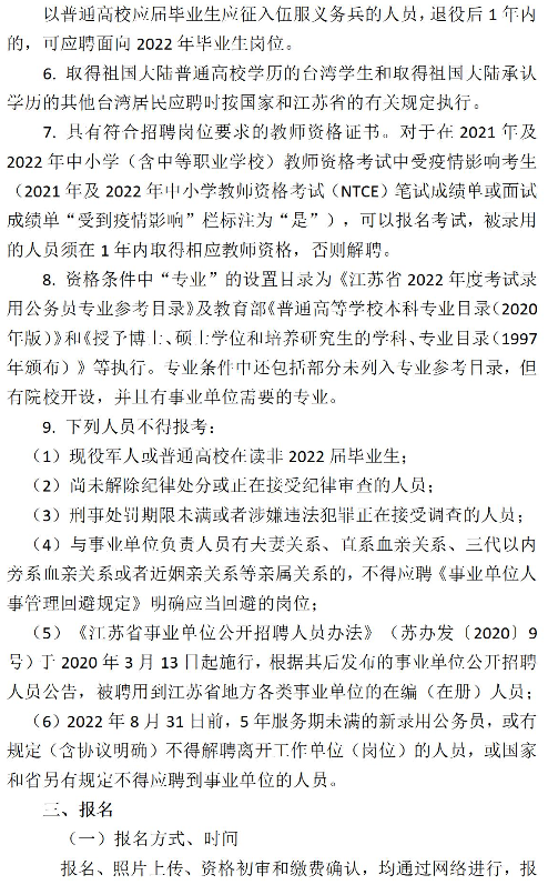 2022年江蘇鹽城阜寧縣教育局公開招聘教師方案 文武教師溫馨提示:近期文武教師網收到舉報,有詐騙分子發布虛假信息,進行騙取報名費,如信息中涉及報名收費,請各位老師謹慎鑒別,確認無誤后再繳費報名,以免上當受騙,一般教育局組織的招聘才需要支付費用,學校招聘不需要支付,文武網所提供的所有考試信息僅供參考,敬請考生以權威部門公布的正式信息為準。 歡迎加入鹽城教師招聘群;248699599,考情、招聘信息早知道!