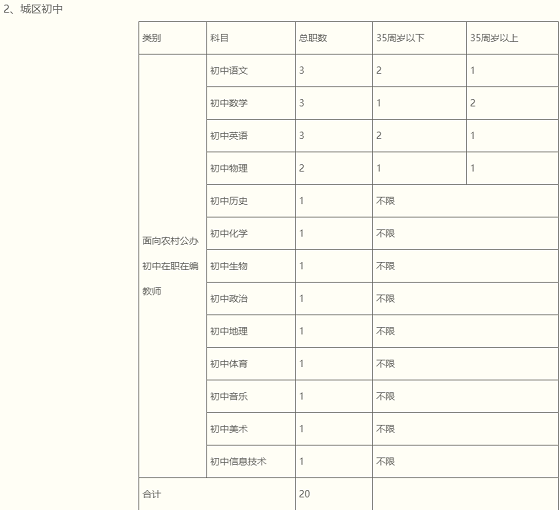 (2)城區初中教師崗位面向農村公辦初中在職在編教師選調;