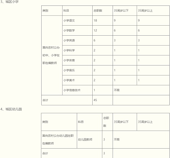 (3)城區小學崗位面向農村公辦初中和小學在職在編教師選調;