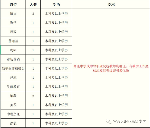 為促進官渡區職業高級中學發展,加強學校師資力量,2022年我校面向社會公開招聘臨聘教師15人,F將相關事項公告如下: