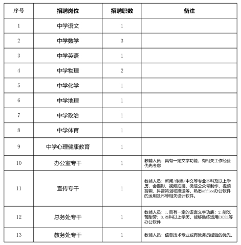 長沙市第十五中學創辦于1922年,迄今已有100年的歷史,原名明憲女子中學。2004年,學校被授予首批“湖南省示范性高級中學”。2020年,我校加入雅禮教育集團,與雅禮中學通過辦學思想借鑒、課程體系共建、管理方式互通、教學資源共享、教育質量共促,實現課程設置、教學資源、教務管理、考試方式與質量評價的“五個統一”,并在高中部設置“雅禮班”,與名校資源共享,助推學校內涵式發展的步伐。現因學校發展需要現面向社會招聘短期臨聘教師和教輔人員,現將有關招聘事項公告如下: