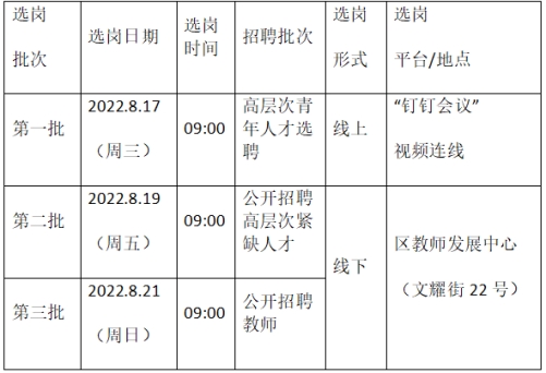 1.各批次可供選擇的“崗位表”于所在批次選崗日前一天在“吳中教育熱線”網站(http://online.szwzedu.cn/)公布。為提高選崗效率,新教師應提前做好選崗意向準備。