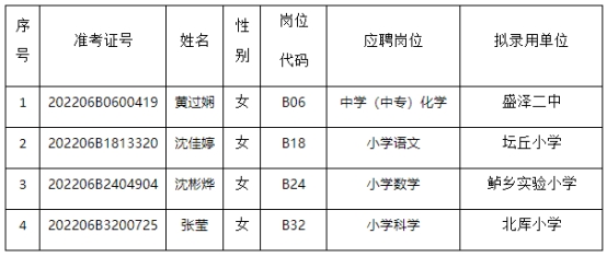 根據《2022年蘇州市吳江區公開招聘備案制教師公告》,經過考試、體檢、政審等程序,以下擬錄用人員予以公示。