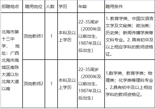 本次招聘工作由北海市第十三中學招聘領導小組組織實施并對招聘工作進行監督。