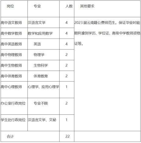 高中部分學科教師及行政人員22名,所有崗位均為全額撥款事業單位在編人員。
