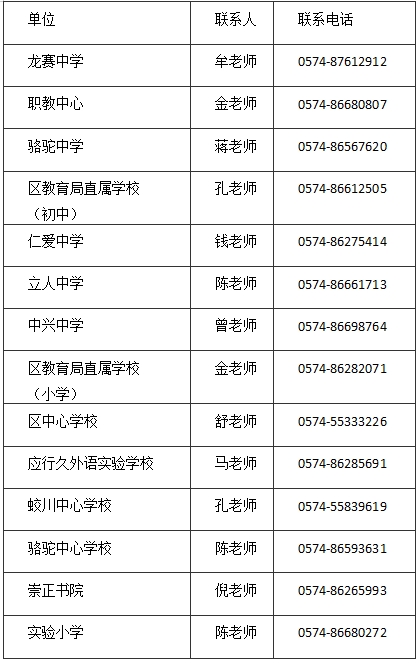 以上電話請在工作日(8:30-11:30;13:30-17:00)撥打,其中11月12日各招聘單位安排工作人員值班接受咨詢(初試開始后,聯(lián)系電話為0574-86276772)。