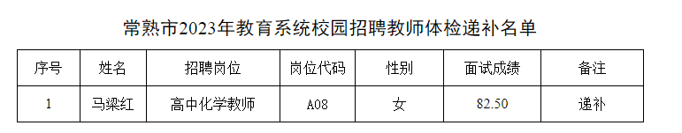 常熟市2023年教育系統(tǒng)校園招聘教師體檢遞補(bǔ)公告