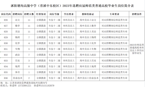 因教育事業(yè)發(fā)展需要,經(jīng)沭陽縣委、縣政府批準(zhǔn),沭陽塘溝高級中學(xué)(江蘇省沭陽高級中學(xué)東校區(qū))面向社會公開招聘在編教師70名。現(xiàn)將有關(guān)事項(xiàng)公告如下: