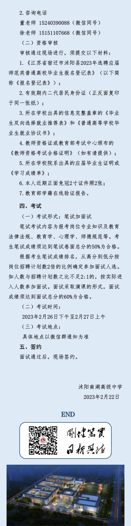 文武教師溫馨提示:近期文武教師網收到舉報,有詐騙分子發布虛假信息,進行騙取報名費,如信息中涉及報名收費,請各位老師謹慎鑒別,確認無誤后再繳費報名,以免上當受騙,一般教育局組織的招聘才需要支付費用,學校招聘不需要支付,文武網所提供的所有考試信息僅供參考,敬請考生以權威部門公布的正式信息為準。 歡迎加入宿遷教師招聘群;371549380,考情、招聘信息早知道