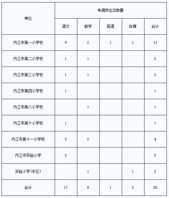 (一)小學考調(diào)崗位及數(shù)量