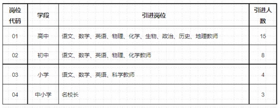 計(jì)劃引進(jìn)30名高層次教育人才,重點(diǎn)需求崗位及引進(jìn)人數(shù)見下表: