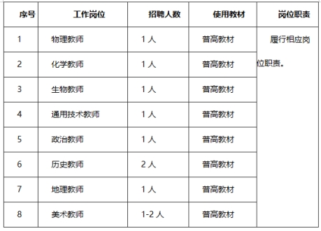 學(xué)校因教學(xué)工作需要,現(xiàn)招聘非事業(yè)編制的物理、化學(xué)、生物、通用技術(shù)、政治、歷史、地理、美術(shù)教師若干人。