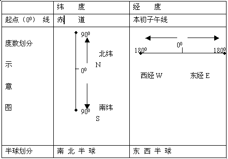 重難點:經度、緯度的劃分,本初子午線的位置和含義,半球劃分