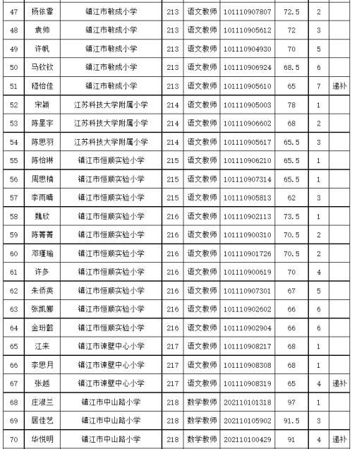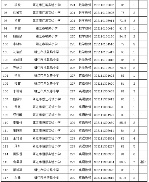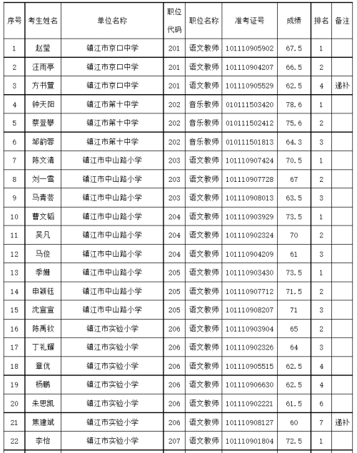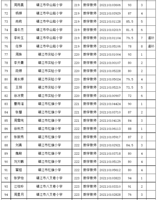 根據《鎮江市京口區2023年集中公開招聘教師公告》(鎮京人社事招公告〔2023〕2號)要求,以下考生通過了資格復審,現予以公示。請考生在鎮江市人事考試考工服務平臺“事業單位考試專欄”查詢閱讀《2023年揚中市、句容市、京口區、潤州區、丹徒區、鎮江新區公開招聘教師和校醫集中面試通告》,查看本人報考職位面試日期安排和面試通知單打印開始時間。咨詢電話:0511-89980831、0511-89980530。