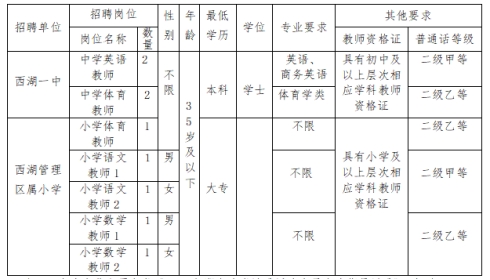 附件:《西湖管理區(qū)教育系統(tǒng)2023年公開招聘工作人員崗位條件及數(shù)量表》