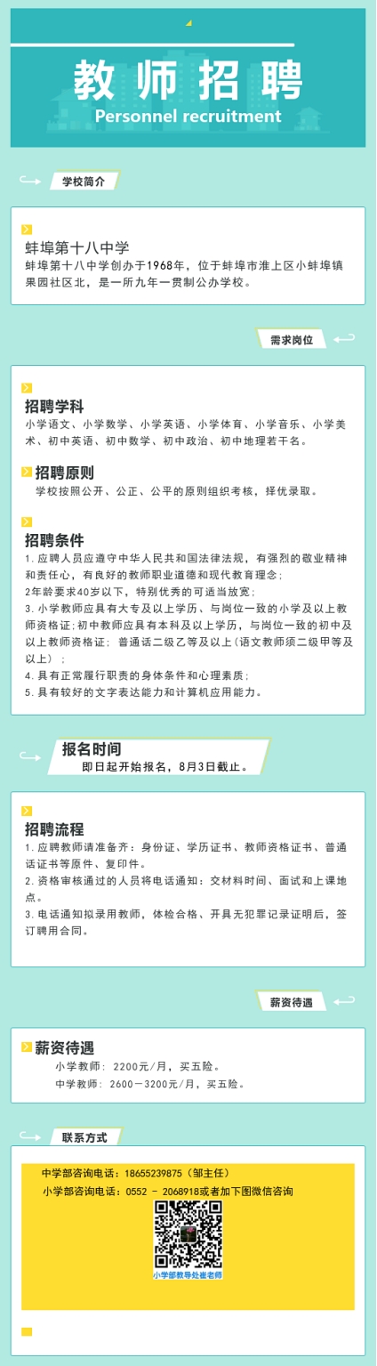 2023年蚌埠第十八中學編外校聘教師招聘公告