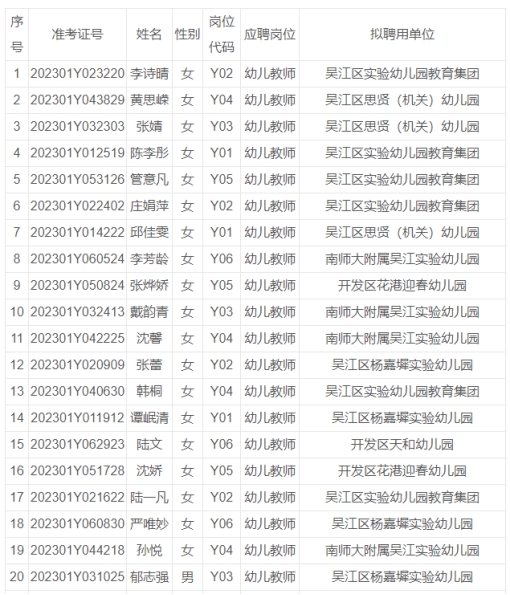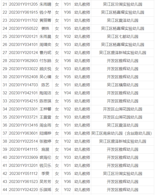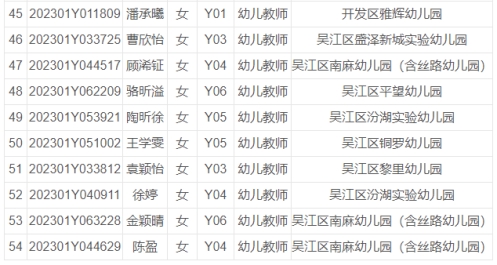 根據《2023年蘇州市吳江區備案制幼兒教師公開招聘公告》,經過考試、體檢、政審等程序,以下擬錄用人員予以公示。