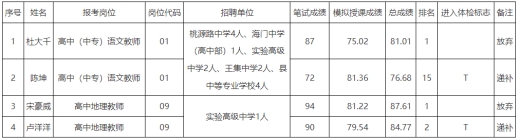 因杜大千等考生放棄體檢,根據《2023年泗陽縣公開招聘公辦學校教師公告》規定,現將進入遞補體檢人員相關信息公布如下: