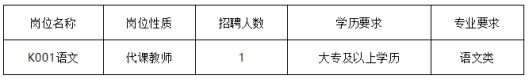 本次招聘小學語文教師1名。全日制普通高校專科及以上學歷學位,專業對口(小學教育專業可以報考與教師資格證對應的崗位)。