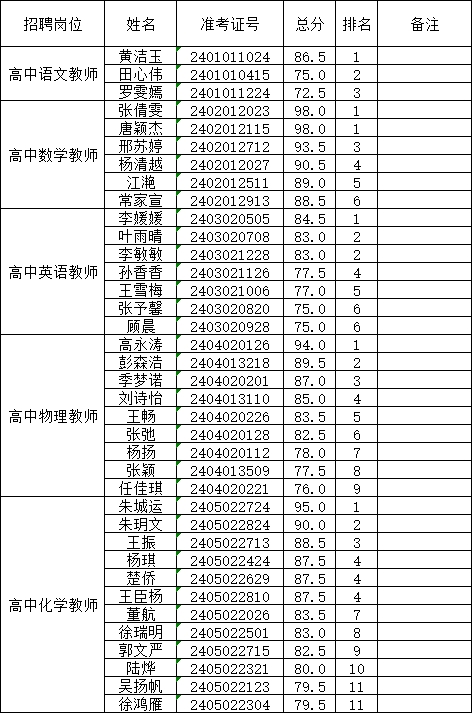 五、南京市第一中學2023年公開招聘教師資格復審考生名單
