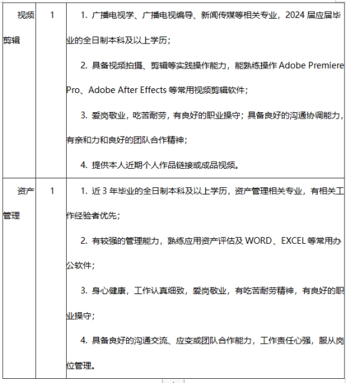 “985”“211”“雙一流”大學、教育部直屬重點師范大學、省屬重點師范大學全日制本科及其以上學歷2024屆畢業生。應聘視頻剪輯和資產管理的教師:符合招聘崗位中的應聘條件即可。