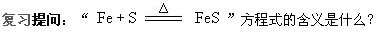學生思考:方程式的含義有:宏觀上表示56份質量的鐵和32份質量的硫在加熱的條件下反應生成88份質量的硫化亞鐵。微觀上表示每一個鐵原子與一個硫原子反應生成一個硫化亞鐵分子。