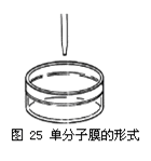 用膠頭滴管(如滴管外有溶液,用濾紙擦去)吸取硬脂酸的苯溶液在距水面約 5 cm處,垂直往水面上滴一滴,待苯全部揮發,硬脂酸全部擴散至看不到油珠時,再滴第二滴。如此逐滴滴下,直到滴下一滴后,硬脂酸溶液不再擴散,而呈透鏡狀時為止。記下所滴硬脂酸溶液的滴數d。