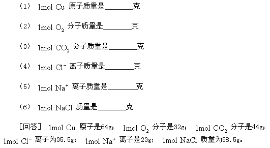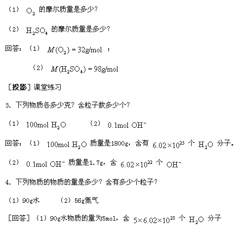 [設問]能否說一說什么是摩爾質量?它的單位是什么?數值怎樣確定?