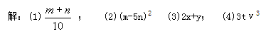 解:(1)12n; (2)(t-2); (3)a3; (4)(1+10%)m