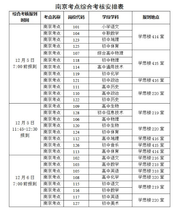 時間:2025年12月5日-6日,按不同崗位分批開展,詳見《南京考點綜合考核安排表》。