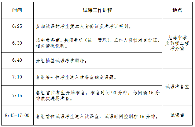 (1)試課對象務必于規定時間內到達指定地點,先抽簽確定試課順序,然后依次備課、試課。