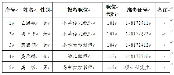 根據(jù)《豐縣2014年中小學(xué)幼兒園教師招聘公告》規(guī)定,現(xiàn)將本次招聘考試遞補(bǔ)人員名單公布如下: