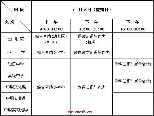 二、2014年下半年中小學教師資格考試筆試時間安排表