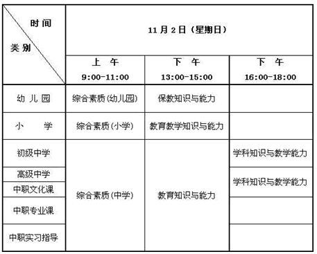 申請中職專業(yè)課及中職實(shí)習(xí)指導(dǎo)教師資格的人員參加高級中學(xué)教師的“綜合素質(zhì)”和“教育知識與能力”兩科筆試,“學(xué)科知識與教學(xué)能力”科目納入面試環(huán)節(jié)考查。