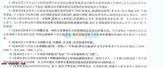 1、C【解析】l776—1787年,德國著名哲學家康德曾先后四次在哥尼堡大學講授教育學,是較早在大學開設教育學講座的教授。后來,赫爾巴特接替了康德在哥尼斯堡大學的教育學教席,并于1806年出版了《普通教育學》。這是一本自成體系的教育學著作,它標志著教育學已經成為一門獨立的學科。該書分為緒論、教育的一般目的、興趣之多方面(教學)、品格之道德力量(德育)四個部分。 2、【解析】由歷史記載來看,我國的小學產生于殷周時代。《孟子·滕文公上》說:"夏曰校,殷日序,周日癢。學則三代共之,皆所以明人倫也。"據推測,校、序、庠都是當時的小學。
