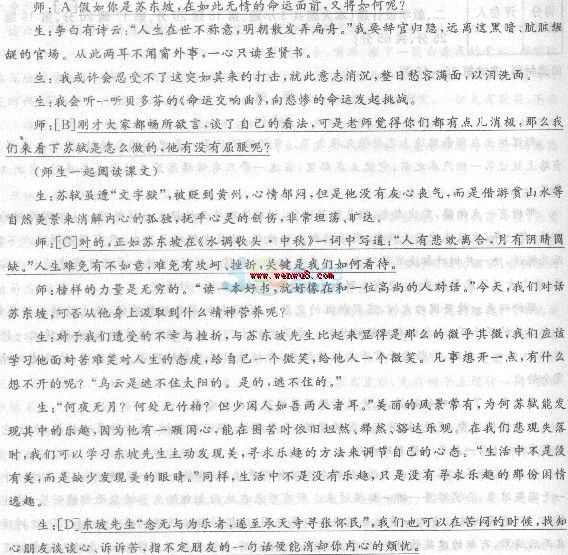 11.閱讀下面《記承天寺夜游》教學實錄(節選),按要求答題(畫線語句的序號與選項的序號是對應的)。
