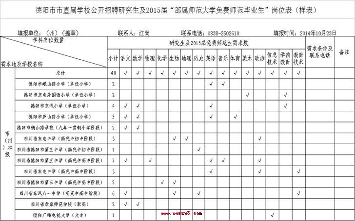 德陽(yáng)市市直屬學(xué)校公開招聘研究生及2015屆“部屬師范大學(xué)免費(fèi)師范畢業(yè)生”崗位表(樣表).rar